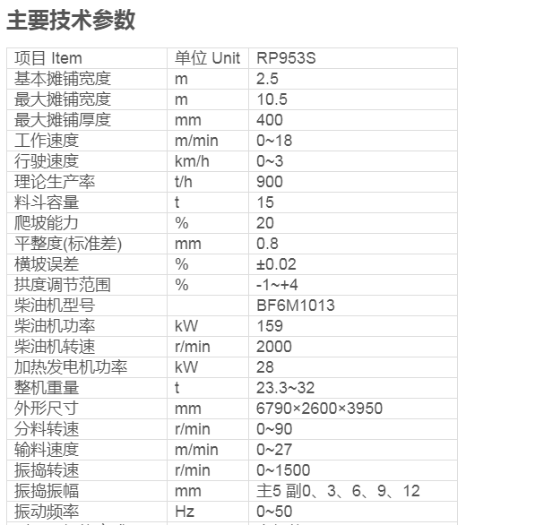 RP953S型瀝青混凝土攤鋪機是根據(jù)市場需求而決定開發(fā)的一種大型攤鋪機,與目前國際******的德國VOGELE S1880-3為同一技術(shù)檔次產(chǎn)品,在部分技術(shù)上處于領(lǐng)先地位,該產(chǎn)品主要適用于攤鋪瀝青混凝土面層,也可攤鋪二灰土、二灰碎石等基層材料,其****攤鋪寬度可達10.5米,是高等級公路建設(shè)中重要的施工設(shè)備。